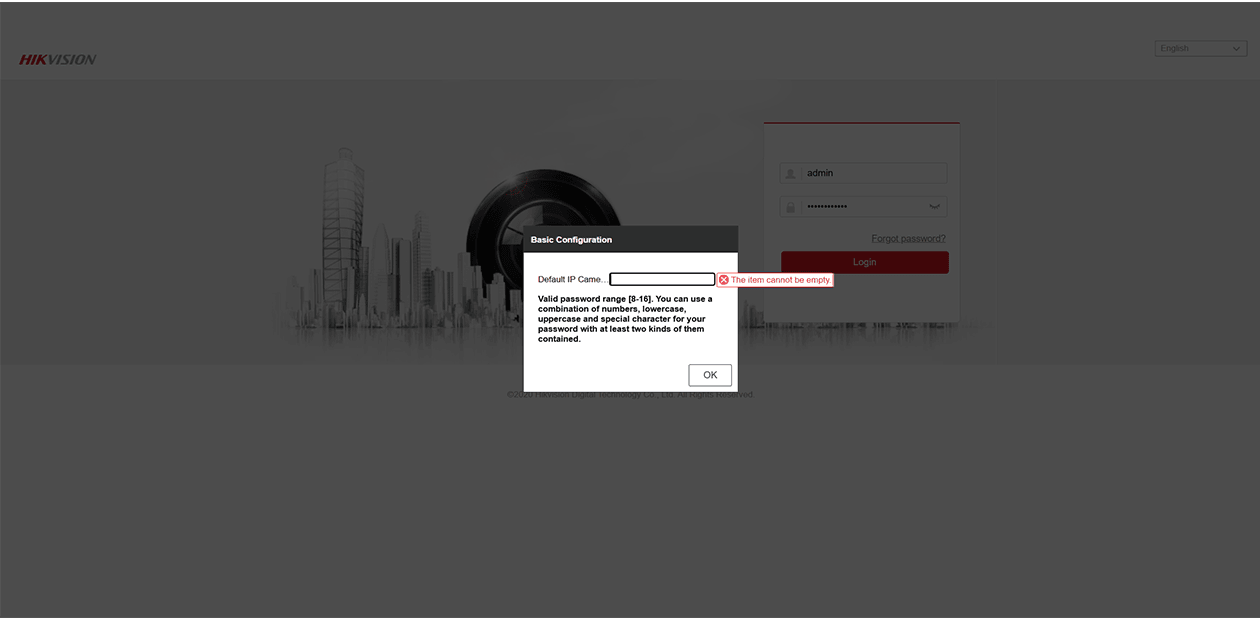 3.3 Попълваме полето за парола по подразбиране на IP камерите: