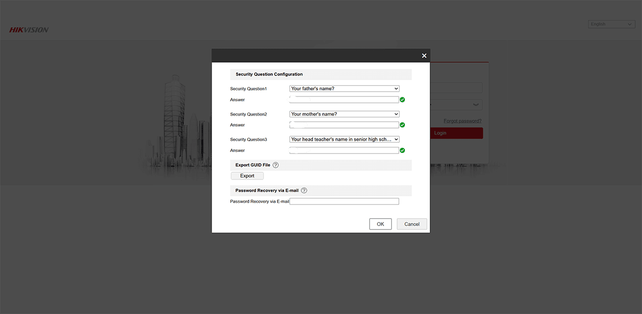 3.4 Попълвате полетата с тайните въпроси и техните отговори и правим експорт на GUID файла. Този файл, както и паролите, ще ни помогнат да възстановим завидските настройки на устройството, ако по някаква причина забравим административната парола: